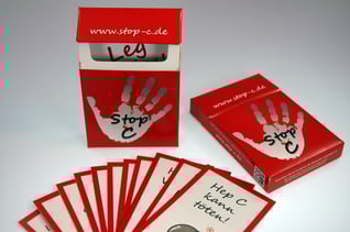 als Präsentationsschachtel für Info-Karten der Deutschen Leberhilfe