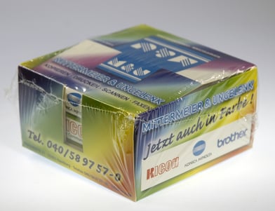 gefüllt mit Klebezetteln, die wiederum auch individuell bedruckt werden können. Die Spenderbox sorgt immer für frischen Nachschub.