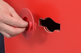 PVC-Matten werden exakt auf Gerätegröße geplottet und halten es stoßsicher in Position. Hervorstehende Scharniere und Öffnungsriegel werden ausgespart.