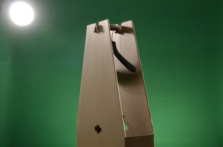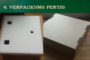 wird abschließend durch den oberen Stülpdeckel aus extradicker Wellpappe erzeugt. Das Gerät kann nun - zu mehreren auf Palette gestapelt - seinen langen und harten Transportweg zu seinem Ziel aufnehmen.