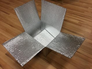 aus Wellpappe, mit Innen angebrachter Thermobeschichtung. Geeignet für Güter, die gekühlt bleiben sollen, oder die ihre Temperatur nicht verlieren sollen.