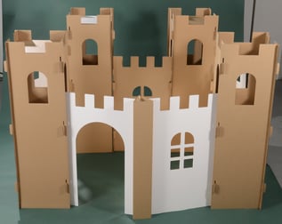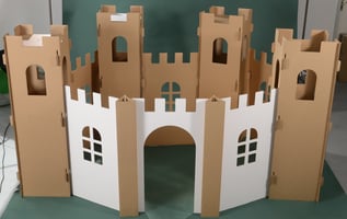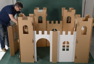 aus Wellpappe. Variabel und in unterschiedlichen Größen aufbaubar.