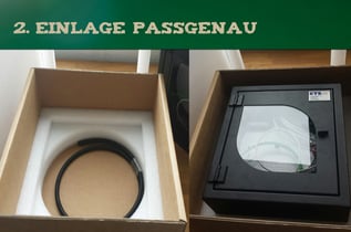 Ein wertiges Temperaturmessgerät, hergestellt in kleiner Auflage, da für einen Sondereinsatz gedacht, muss in einer stabilen und transportschützenden Verpackung einen langen Weg heil überstehen. Zusätzlich muss ein 8 m Kabelschlauch in der Verpackung verstaut werden