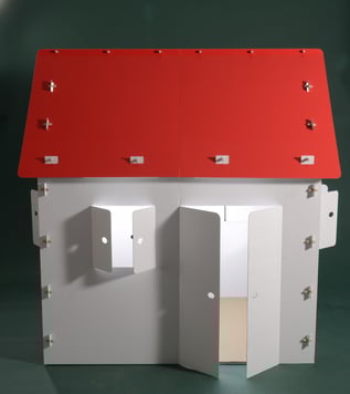 aus Pappe. Variabel und in unterschiedlichen Größen aufbaubar.